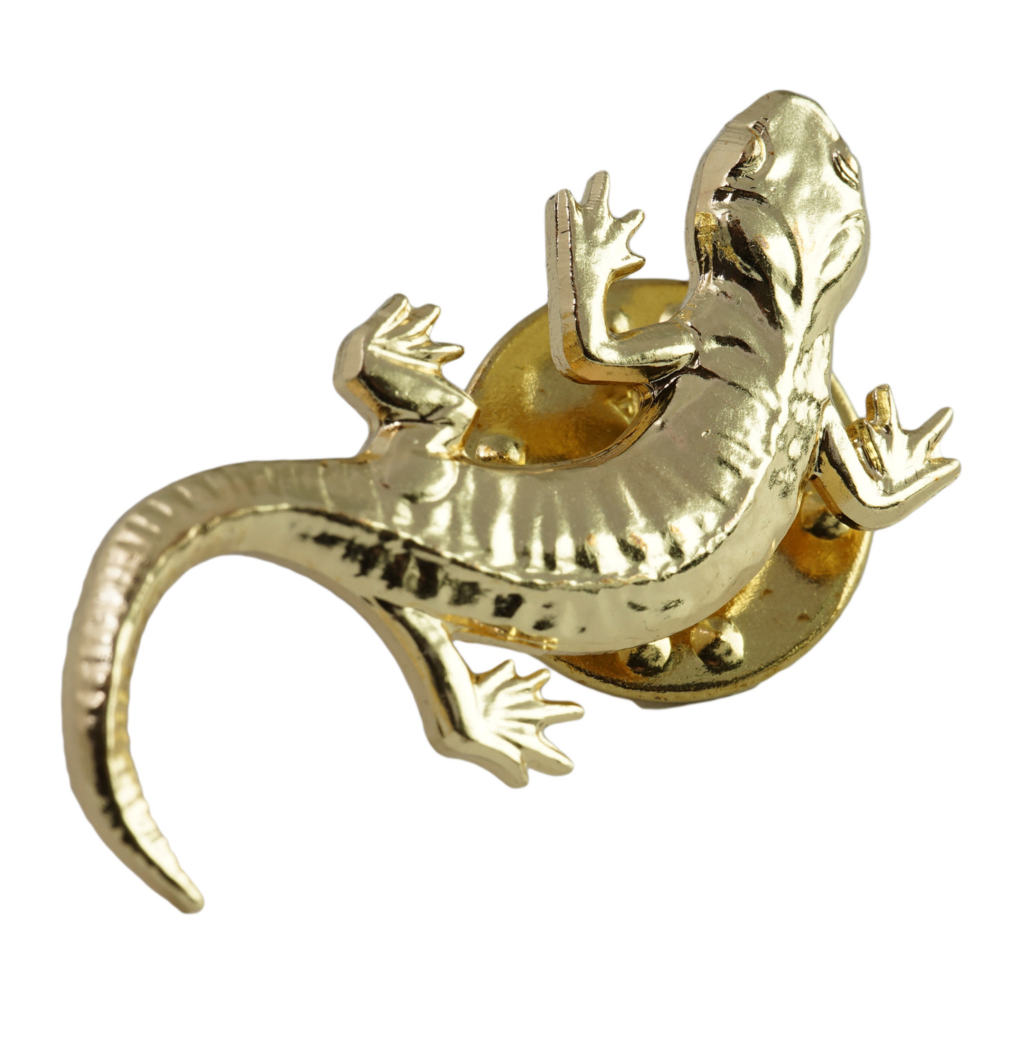 This elegant metal pin, featuring a beautifully detailed salamander, is made from high-quality metal with a real gold-plated finish.