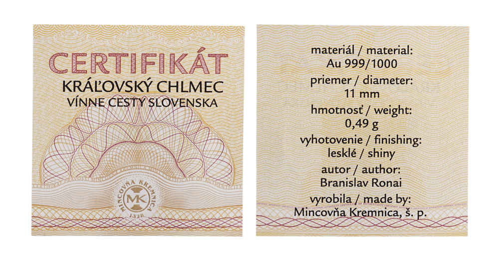 The series consist of 24 medals, on which will gradually show 24 Slovak towns, that are located on the route of six official wine routes in Slovakia: Malocarphatia wine route, Royal Nitra wine route, South Slovak wine route, Central Slovak wine route, Tokaj wine route a East slovak wine route. From every route we have chose 4 interesting towns that will be displayed on medals.