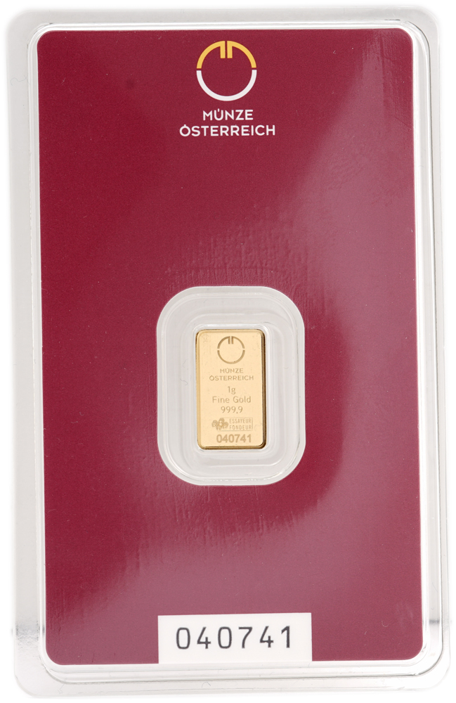 1g fine gold investment bar from the prestigious Austrian producer Münze Österreich AG. This mint ranks among the most significant European numismatic institutions.