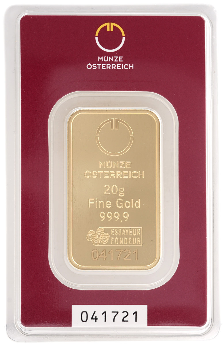 20 g fine gold investment bar from the prestigious Austrian producer Münze Österreich AG. This mint ranks among the most significant European numismatic institutions.