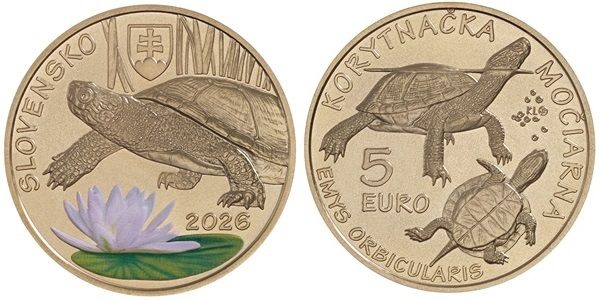 €5 base metal collector coin Fauna and flora in Slovakia – the European pond turtle