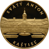 Obojstranná pozlátená medaila z edície "Slovenské hrady a zámky" s motívom kaštieľa "Anton".