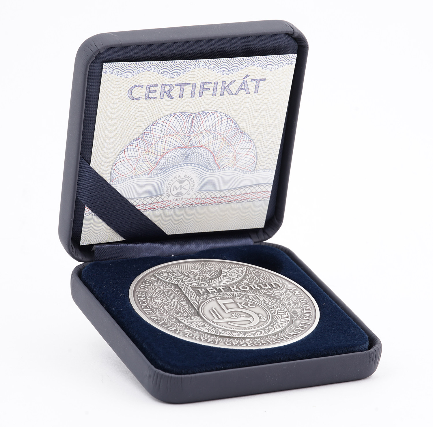 Strieborná medaila - 100. výročie razby prvej Československej 5-koruny